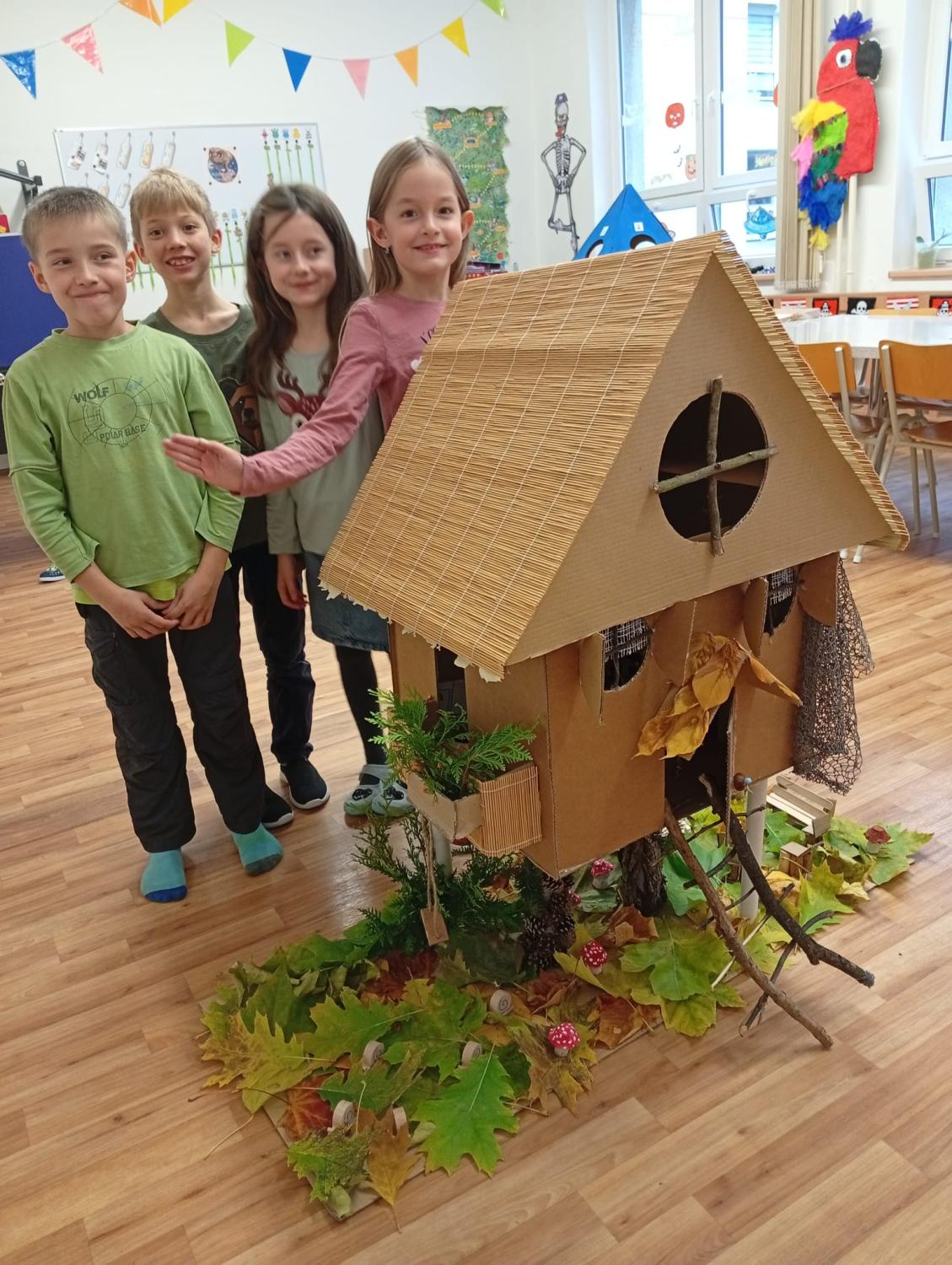 Představte si, že se z vás stane úplně malý skřítek. Jak by vypadal váš dům? Naše družina si s tím poradila ve velkém! Obydlí pro naše skřítky postavila na nožky a krásně jej zakomponovala do lesní scenérie.