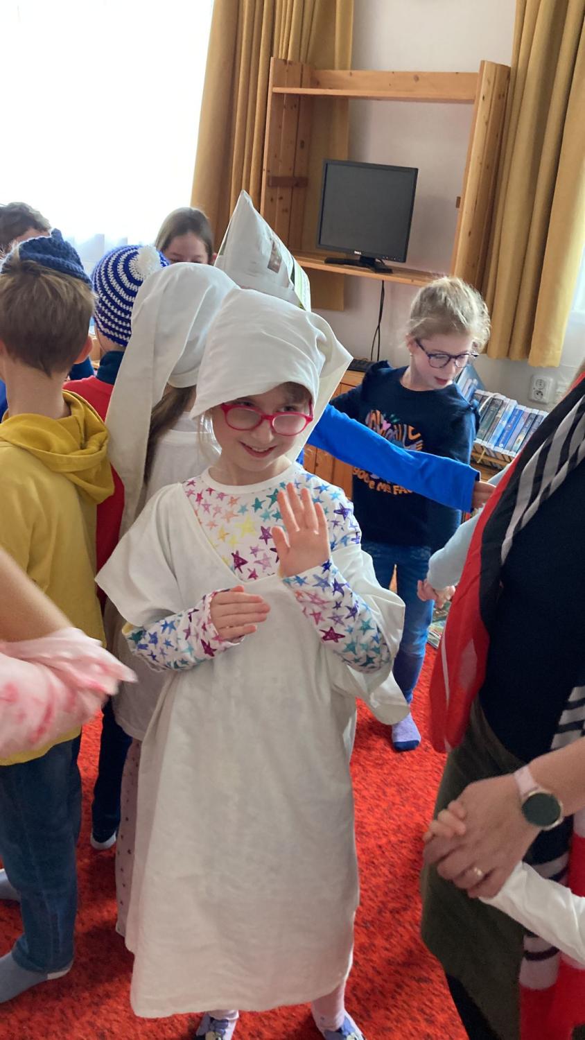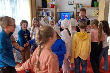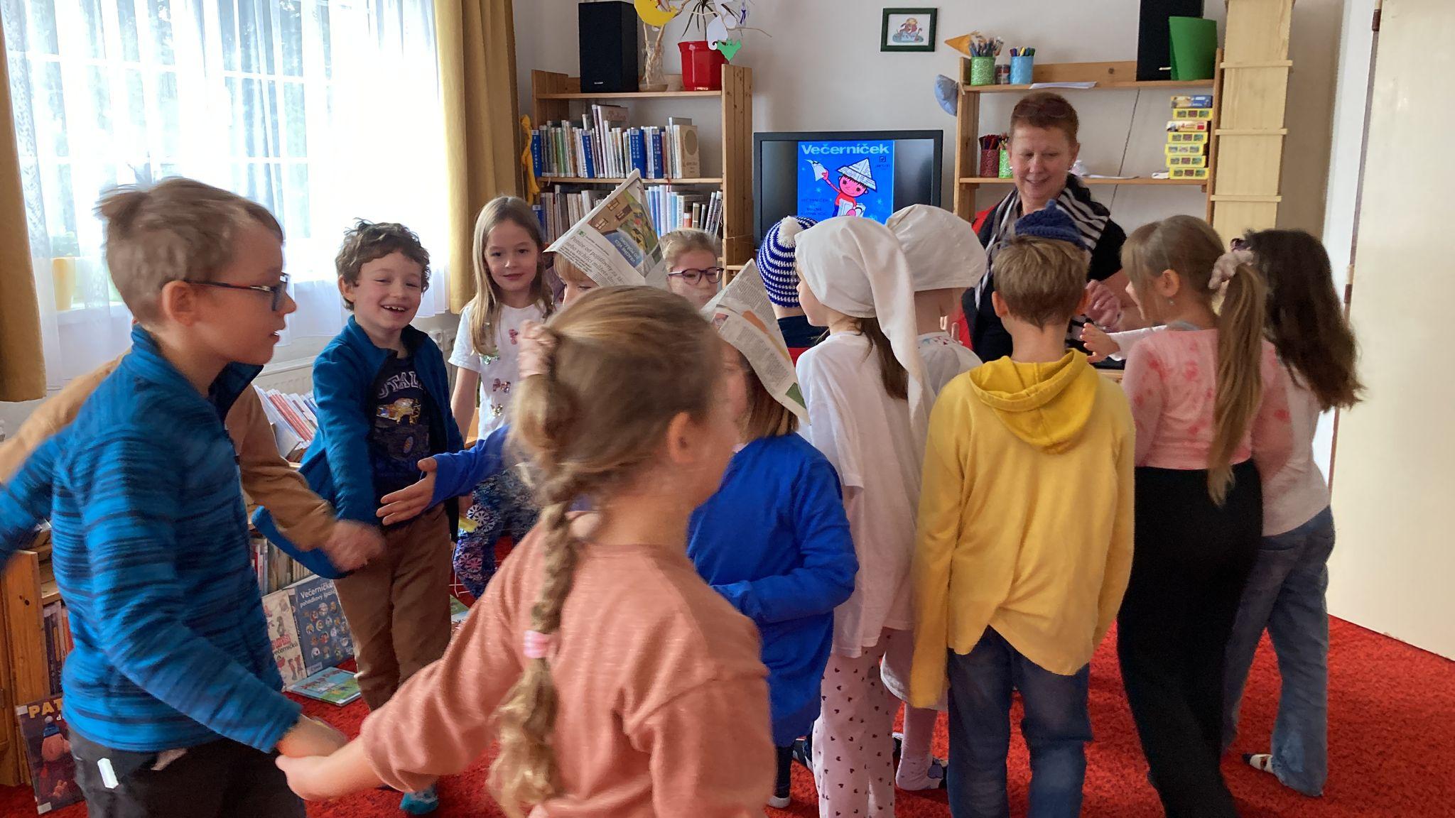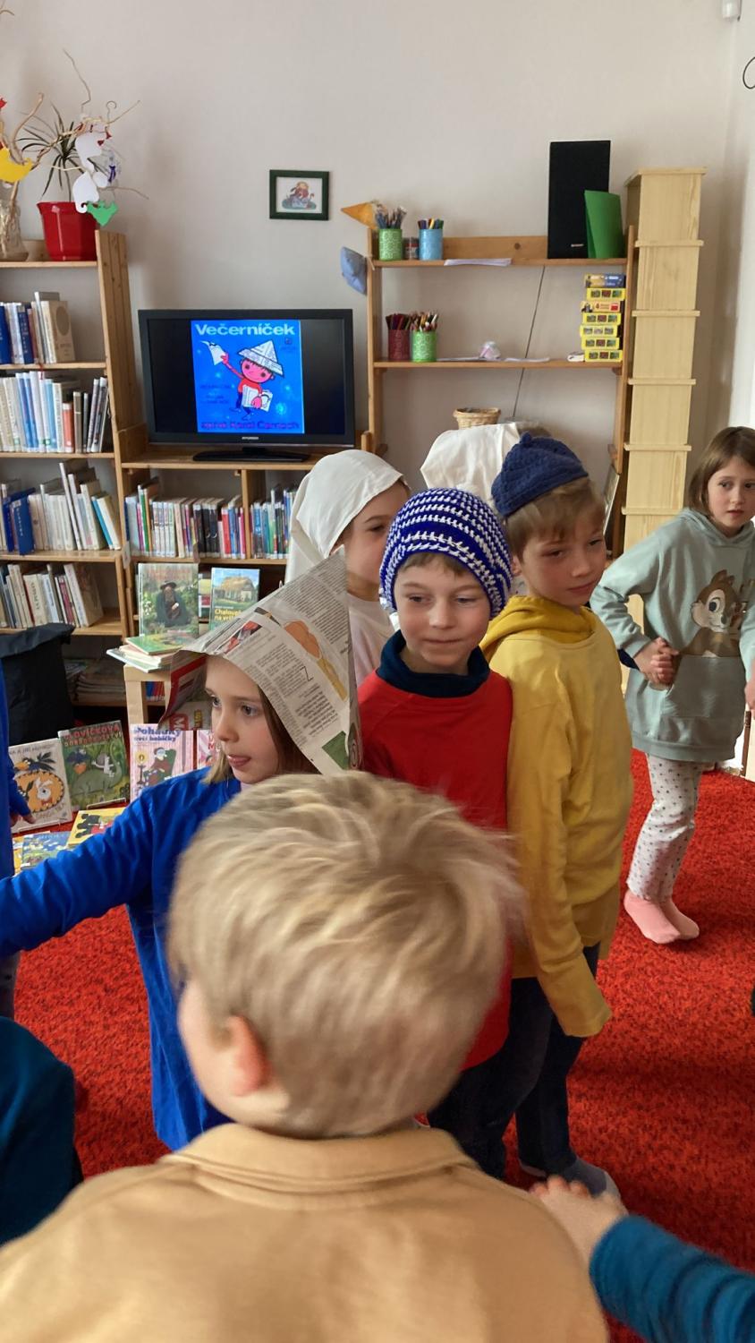 Třída 2.A zavítala do knihovny, kde děti čekal program věnovaný samotnému Večerníčkovi – známé postavě s papírovou čepičkou. Druháci si připomněli jeho příběh, historii i oblíbené knížky.
