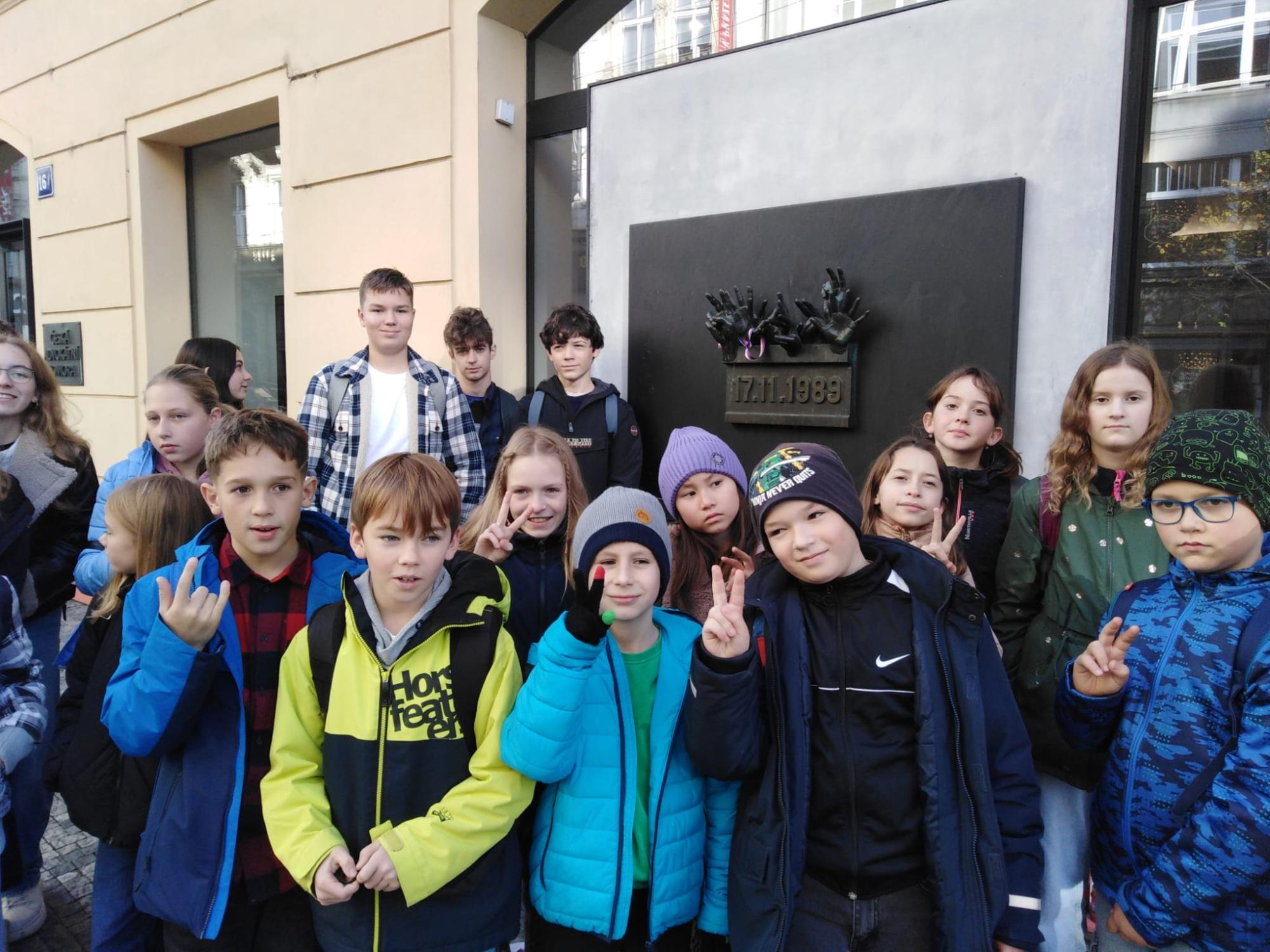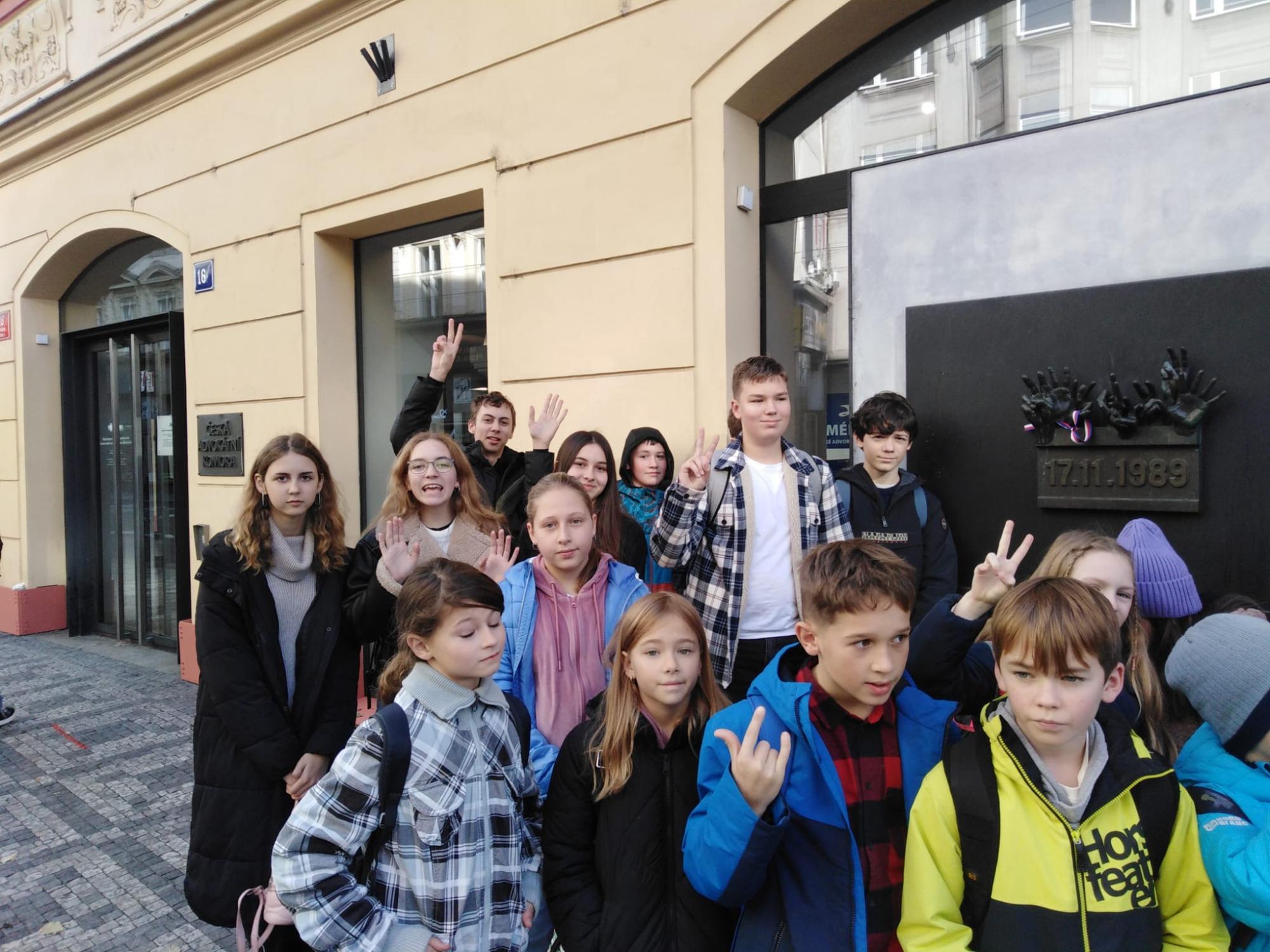 Po návštěvě muzea jsme se společně přesunuli na Národní třídu, kde jsme u pomníku 17. listopadu vzdali tichou úctu událostem, které formovaly naši svobodu. Připomněli jsme si, proč je důležité žít v prostředí, kde se můžeme učit, tvořit a vyjadřovat beze strachu – a proč je samozřejmé říct: Díky, že můžeme.